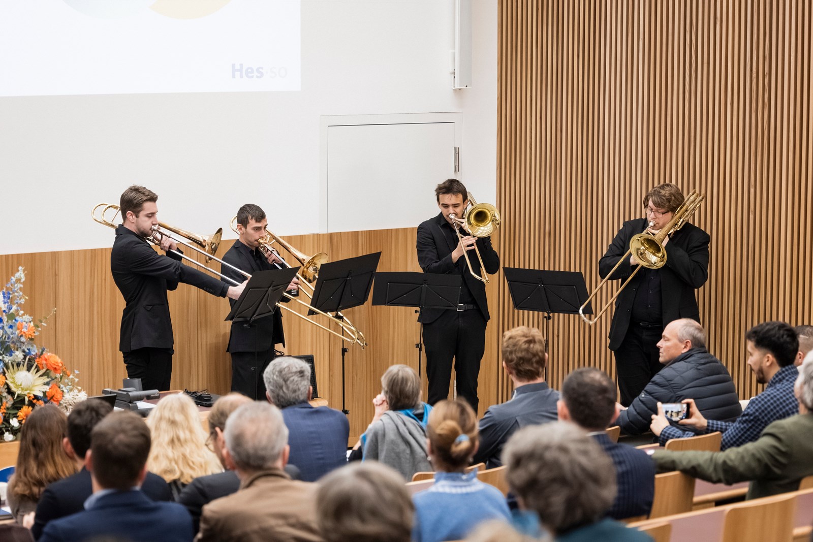 La cérémonie a été rythmée par la remise de deux distinctions majeures. Chacune est dotée d’un montant de 5’000 francs. Elles mettent en lumière les forces vives qui font avancer la HES-SO et la société.