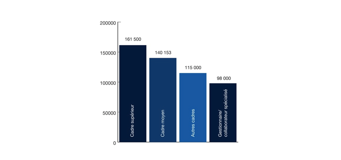 50% des cadres moyens gagnent entre 109'510 et 170'900 francs (médiane, voir graphique en haut à droite). Pour les fonctions de cadre supérieur, cette fourchette se situe entre 123'765 et 206'000 francs.